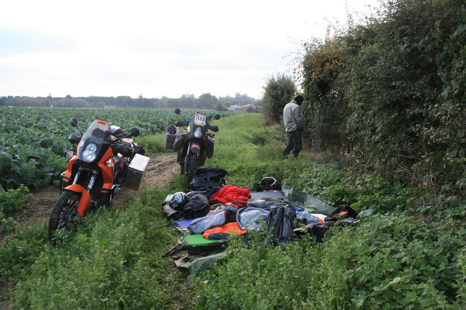 Wo schlafen? Nach erfolgloser Suche einer Übernachtungsmöglichkeit, auf nem Englischen Kohlfeld – ohne Zeltaufbau, einfach Plane, ISO Matte und Schlafsack ;-) – was für ein Sternenhimmel[/b]