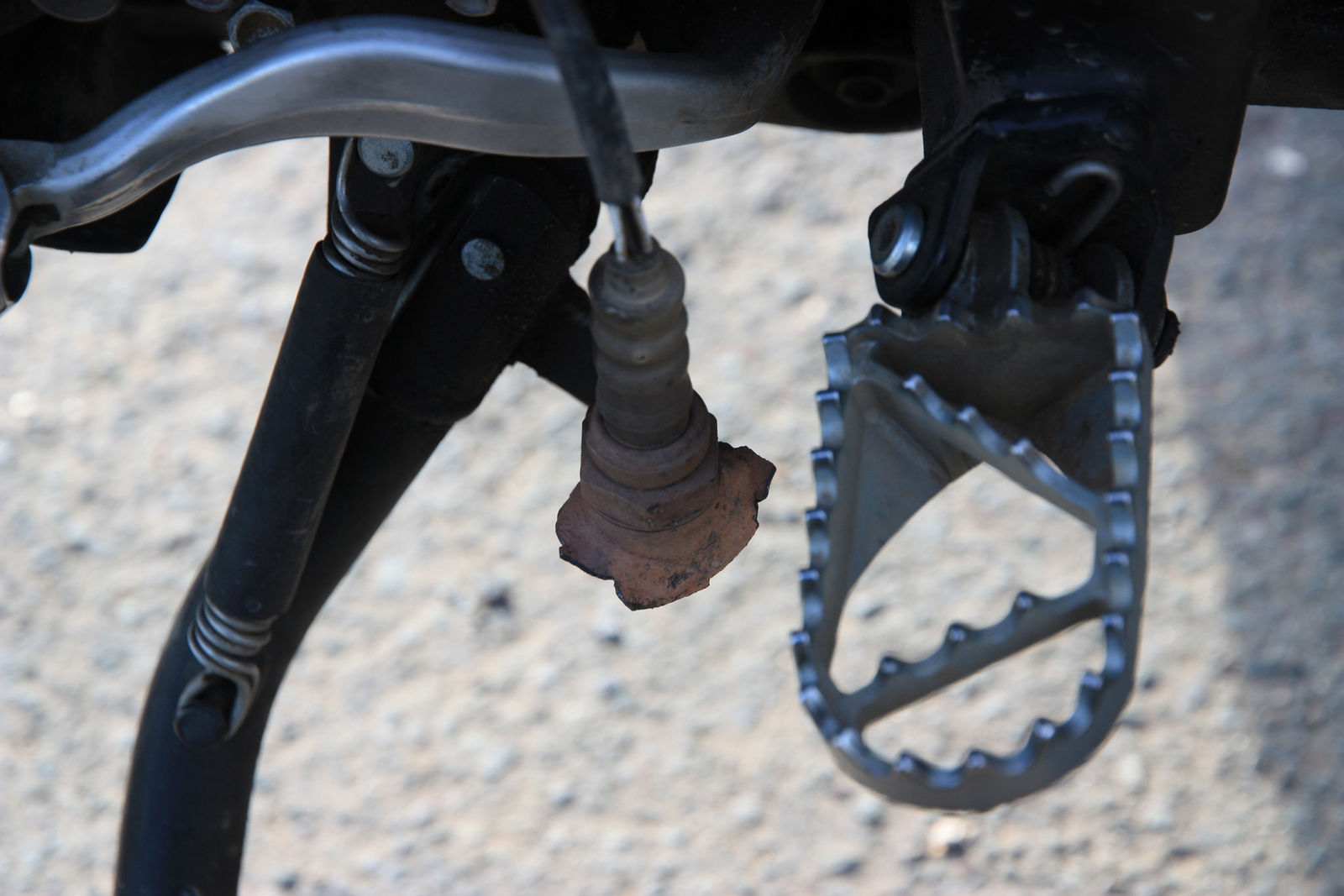 Irgendwo in Hessen, Heinz und ich fahren vorneweg – plötzlich fehlt das dritte Mopped. Rumgedreht, Atzimuth am Straßenrand. „Scheißendreck ey – Mopped nachm Wheelie aus gegangen“ Kurz geguckt – Seitenständerkillschalter. Überbrückt – Domina angerufen, „dauert ein Moment länger“.