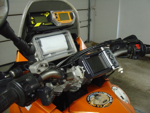 ICO ist gut und stabil. Kostet aber auch und bestenfalls brauchst Du zwei davon. Die alten 620er/640er-Adventure hatten den kleinen IMO. Der ist für sowas bestens und mit Glück auch kostengünstig zu bekommen. Den direkt auf den Roadbookhalter und eine Kombifernbedienung an den Lenker ...