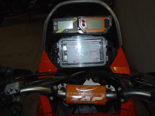 Roadbook musst unbedingt entspannt lesen können im stehen, den 300er hab ich obendrüber. Damit ich den auch besser lesen kann, hab ich meine Scheibe nach vorn verlängert um mehr Platz zu bekommen.