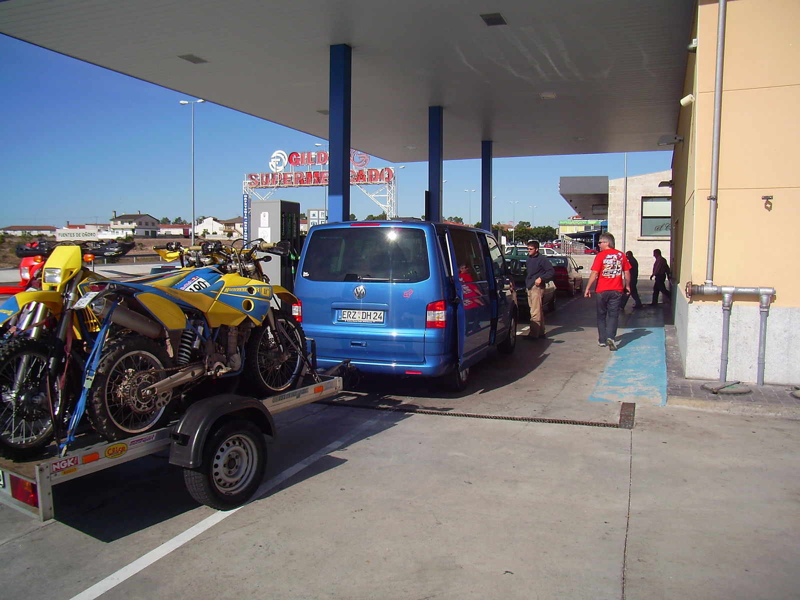 Außerdem würde mich mal interessieren, wie man 2 Motorräder auf so einen Anhänger drauf bekommt und vor allem wie man sie festmachen kann. Wenn ich da eine Maschine drauf stehen sehe denke ich immer, dass ich die zweite mangels Breite nicht mehr drauf bekommen werde.