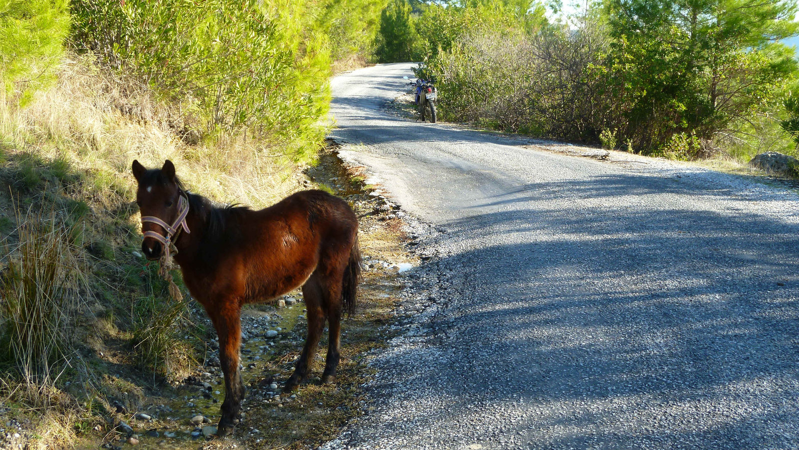 Mit leichter Verspätung kam die Yamsel an, alles gut, der montierte Metzeler ENDURANCE hat noch bestenfalls 40 %, das is nich so dolle, nun, geht noch, weil’s trocken ist. Kurze Proberunde zum Strand, darauf gabs einen leckeren frisch gepressten Granatapfel-Saft. Das Motorrad hat guten Druck, klingt vernünftig und die Sitzposition passt, meinen TT-Halter samt Oregon mit Openmtbmap-Türkeikarte problemlos montiert. Im Gegensatz zu der BMW F 650 GS-Gießkanne die ich mal auf Madeira hatte.