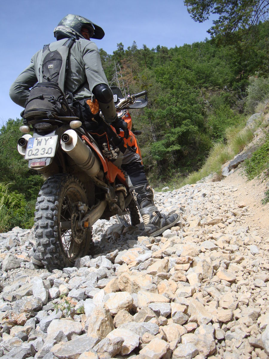 Begegnet sind wir offroad genau 5 mal irgendwelchen anderen Menschen. Einer HP2 aus FF/M und zwei @ aus Frankreich die eine Pyrenäenquerung gefahren sind. Der Rest waren Wanderer, nunja bei der Hitze.....