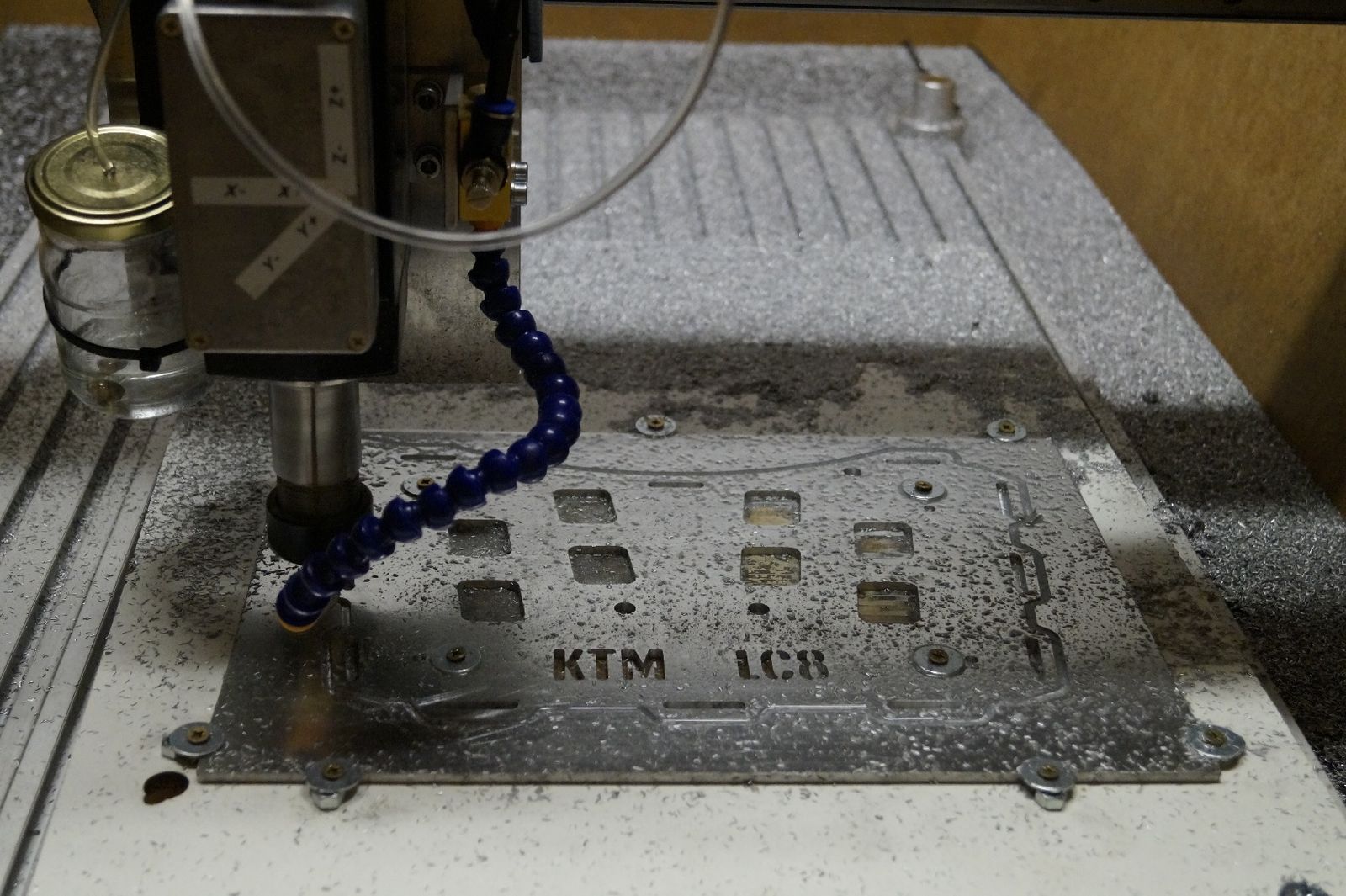 Also ab in die Werkstatt und n Stück 4mm Aluminiumblech auf die CNC-Fräse gepackt.