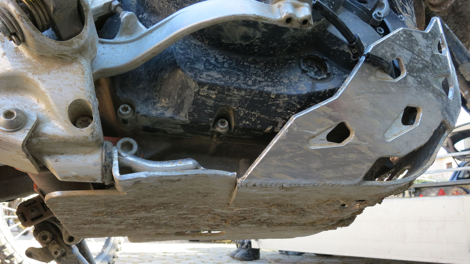 Méca System macht sonst gute Sachen, aber speziell der Motorschutz für die 690er hat als Schwachstelle die vordere Aufnahme. Dort ist nur gekantetes Alublech, was - auch ohne heftige Aufsetzer - einfach durchvibriert.