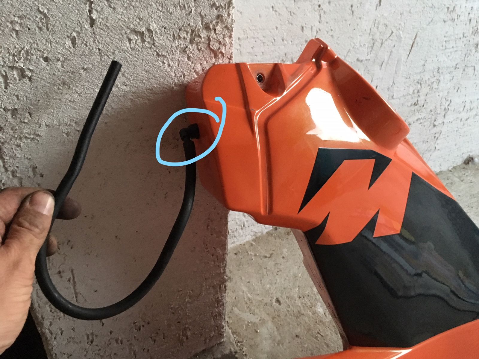- Wenn ich einen Schlauch am Belüftungsnöppel der Deckelinnenseite ansetze und reinblase, um die Tankbelüftung zu simulieren, dann strömt fast ungehindert Luft aus allen vier Bohrungen der roten Abdeckkappe aus.