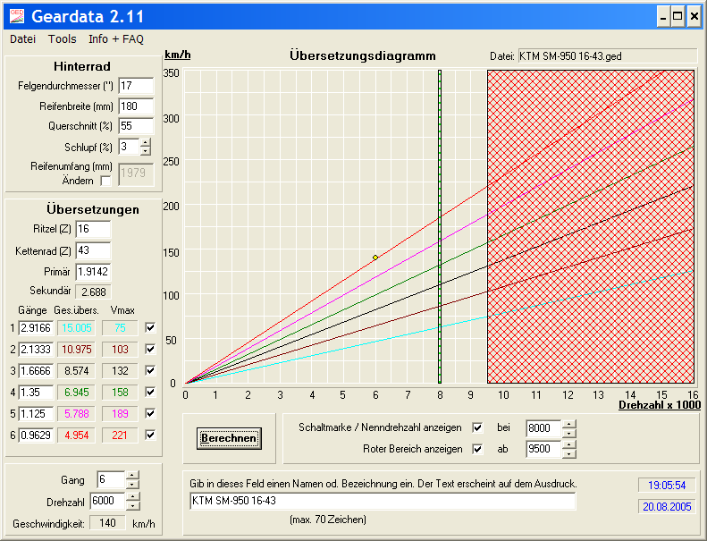 Bin vor 2 Jahren noch eine V-Strom gefahren, bei der ich die Übersetzung von 17:41 auf 16:45 reduzierte (fast 17%!)