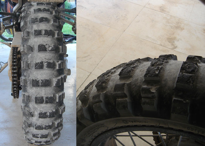 Übrigens werden die Motocross-Reifen an der Karkasse gemessen und die Straßenzugelassenen an den Stollen. ein 120/100-18 Crossreifen ist praktisch gleich groß wie ein 140/80-18 Enduroreifen.