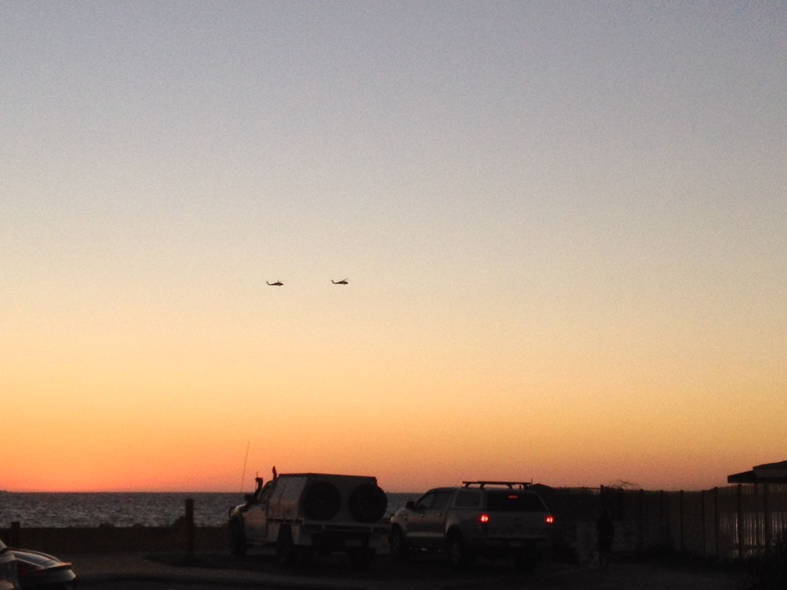 Das Australische SAS trainiert mit Black Hawks am Strand.