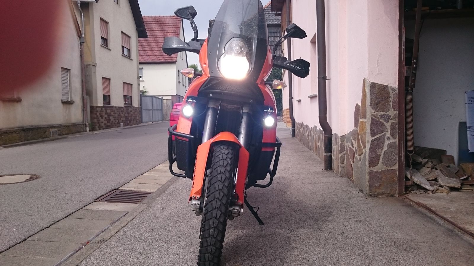 Hab da ein bisschen basteln müssn. Was fertiges gabs net wirklich. Hab den originalen Satz von KTM für die 990er anvisiert. Der wird aber nicht mehr hergestellt und habn keine zulassung.(Teilenummer: 60114910033) Einzelne Komponenten gibt es aber original von Ktm. Also hab ich folgendes gemacht:
