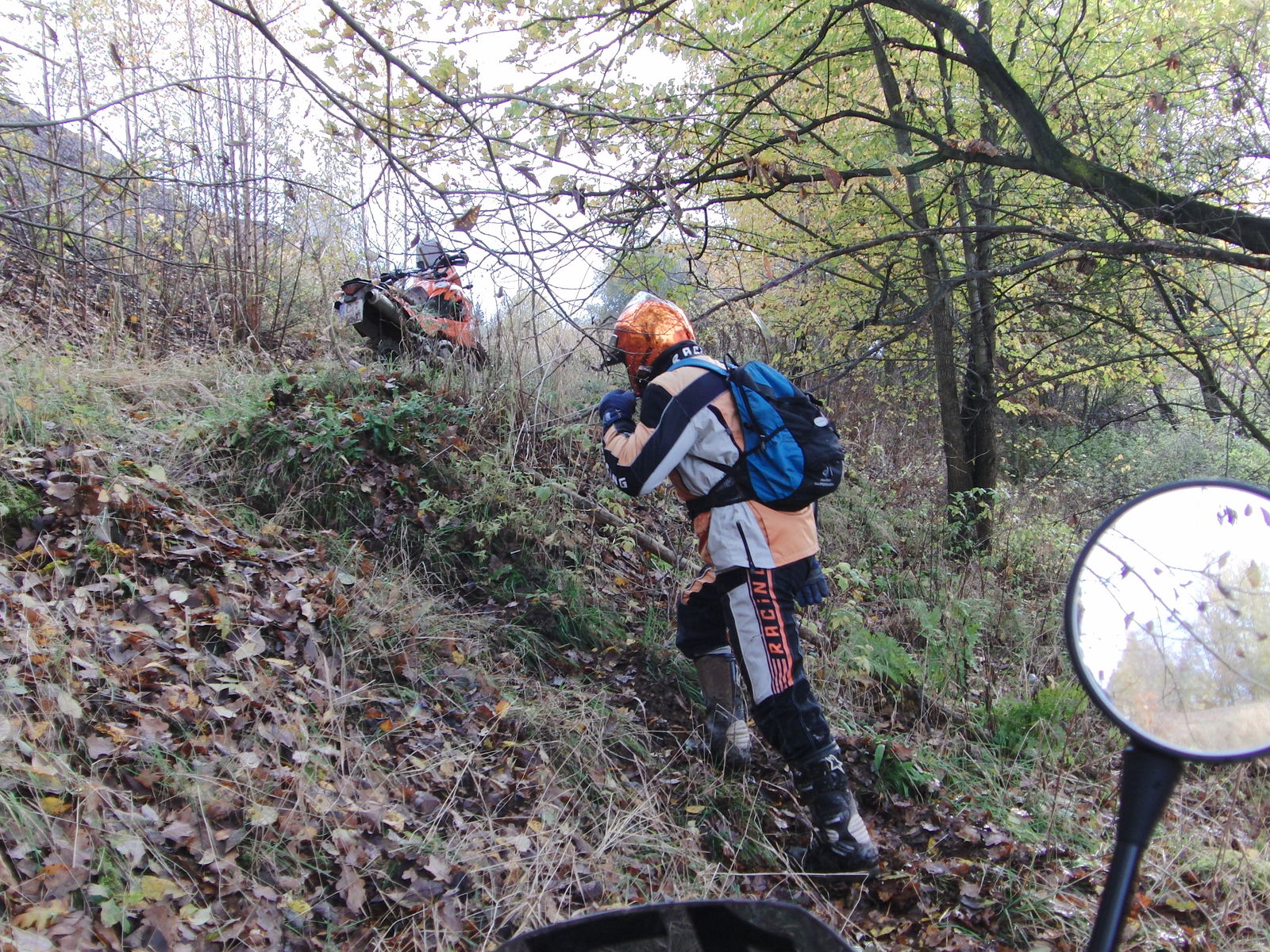 Na und dann im Waldstück, an der steilen Passage, kannte mein Franky wieder nur Vollgas oder gar kein's. Manchmal denke ich mir, der hat keinen Gasgriff, sondern in Schalter eingebaut. Laughing