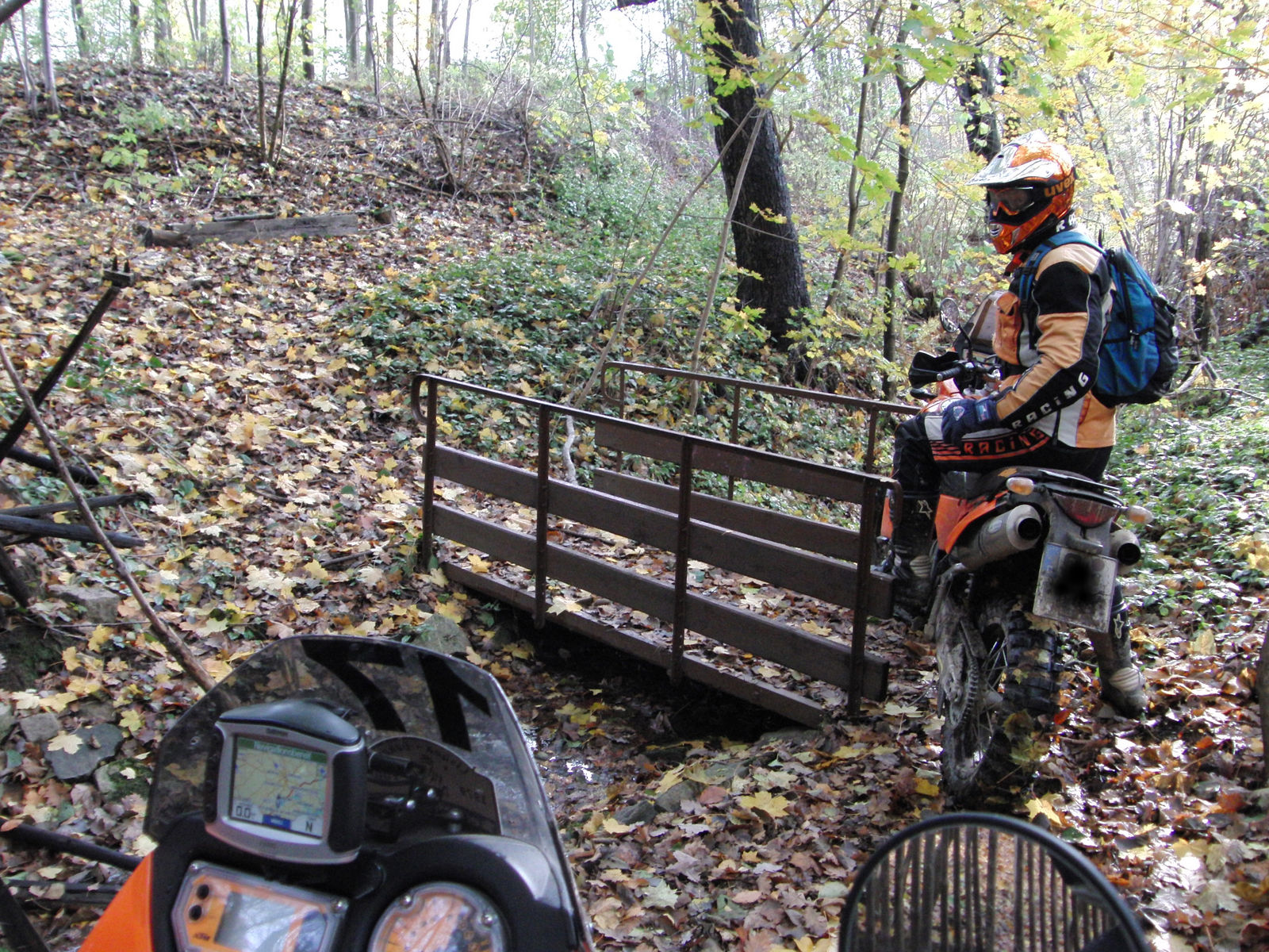 HA..HA... geschoben...ich biege mich... hab Dich aus der Brücke befreit. War ja schon am weiter fahren, auf einmal hörte ich es hinter mir Hupen, ich drehte mich um und sah Frank wild mit den Armen fuchteln. Musste mir erst einmal, einen sicheren Stand für mein Motorrad suchen. Naturlich in der zwischen Zeit Huupp...Huupp von meinen Frank. Ich rannte zurück und da hing er hilflos in der Brücke. War ja auch schnell ne Erklärung dafür gefunden. Weil ja die N, nicht nur tiefer sondern auch viel schwerer ist als meine S. Das ganze ABS und Einspritzgeraffel wiegt halt paar Kilo mehr und tanken tut er auch immer voll. Da müssen ja zwangsläufig Brücken unter einen zusammen brechen.