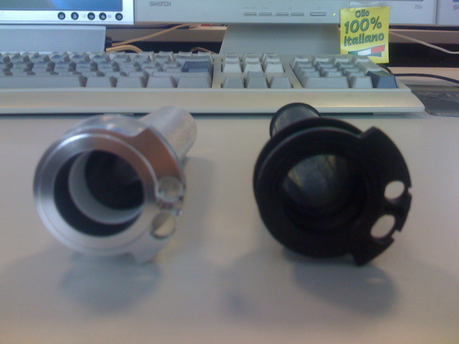 wie zuletzt erwähnt habe ich einen Freund von mir bzgl. des gelagerten Gasgriffes mal angesprochen. Er schaut wirklich exakt so aus wie der originale Plastikgriff ist aus Alu und hat am rechten Ende ein integriertes Kugellager.