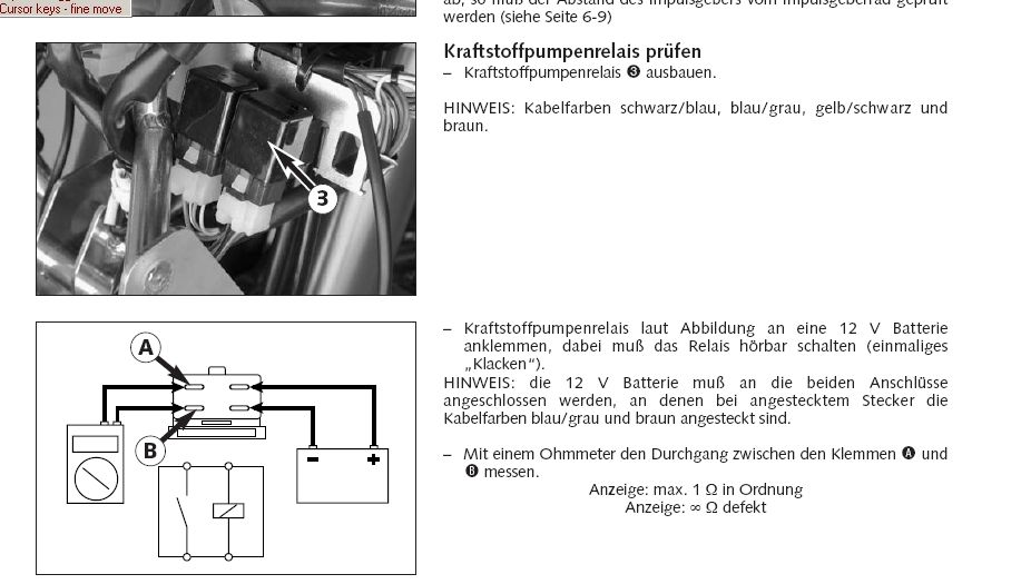 | Zitat: | | wie überprüfe ich das Relais das vor der Benzinpumpe geschaltet ist |