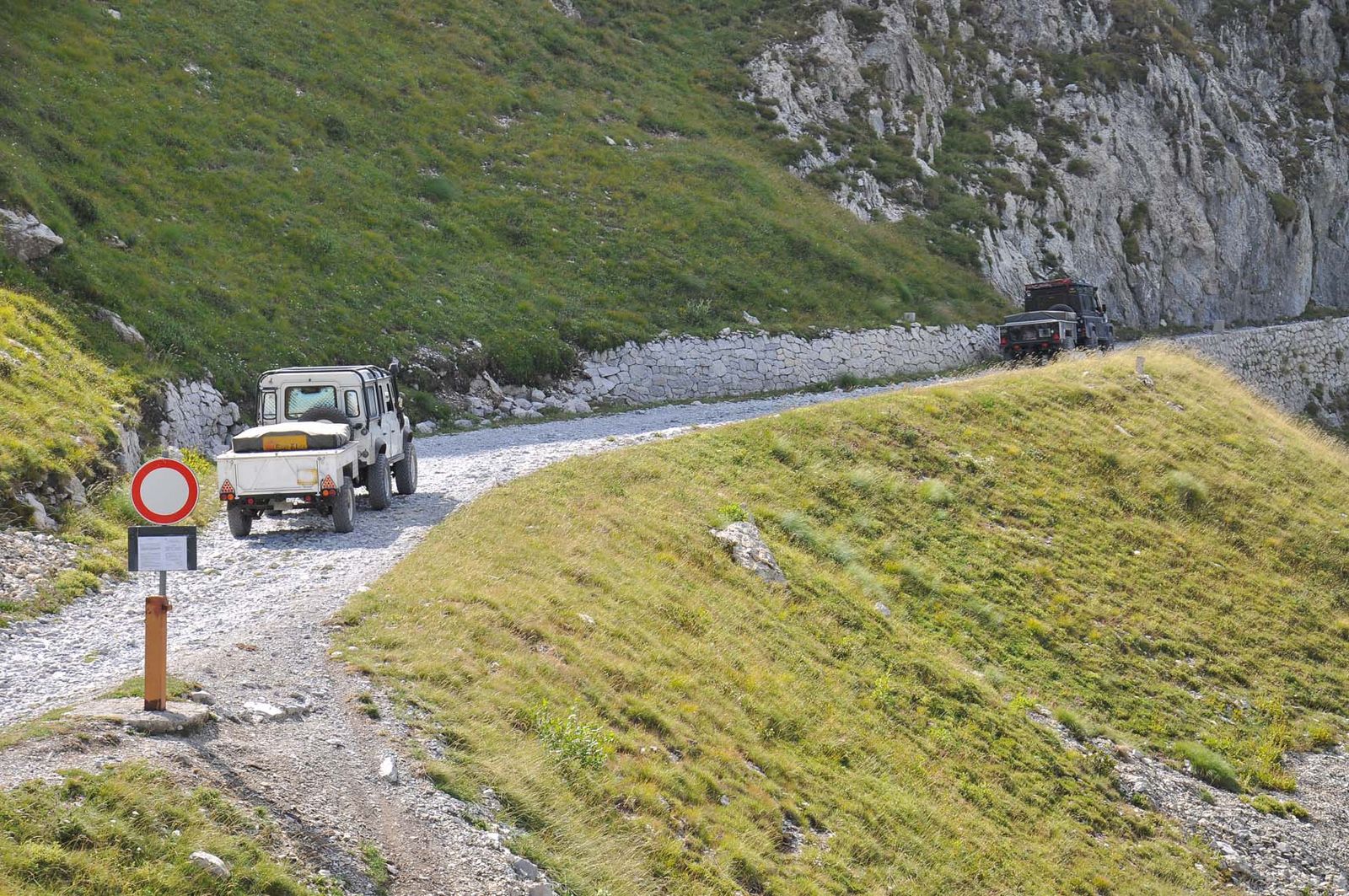 Wir haben auch ein bisschen gerätselt, ob dieses Verbotsschild nur aus versicherungsrechtlichen Gründen dasteht, denn bei so viel Verkehr und offenen Schranken kann man nicht an eine wirkliche Schließung glauben. Wer weiß, was da die Tourismusbranche und der Bürgermeister unterm Tisch ausgehandelt haben. Schließlich ist es eine strukturschwache Region und die LGKS ein touristisches Aushängeschild. Nicht zu vergessen sind natürlich die genussorientierten Italiener selbst, die mit ihrem Fiat solange berghoch fahren, bis die Karre fast zerfällt, um dann gemütlich ihre Picknickdecken auszubreiten. Die wollen auch keine Schranke vor der Nase haben.