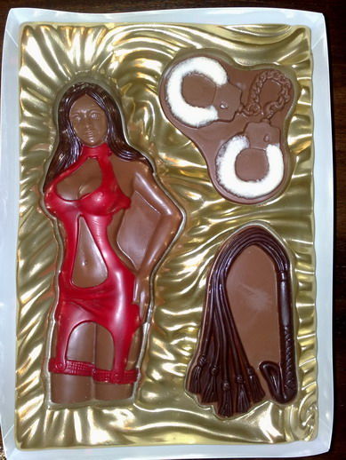 Die Schoko-Handschellen, gibt´s die auch einzeln, bei Sarotti im Keller ? |