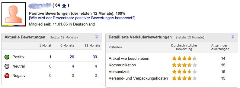 4 neutrale Bewertungen und nur 3,5 bei Versandzeit und dann die Bewertungstexte, dass bedeutet "BEI MEINER EBAYERFAHRUNG" nur unnötigen Ärger.