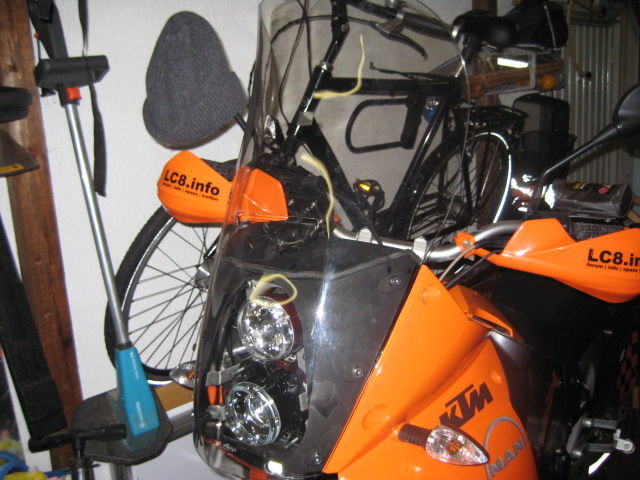 | Obercommander @ So, 13. Jun 2010, 21:00 hat folgendes geschrieben: | | habe ein geniales windschild zum anklippen von touratech abschließbar. sieht harmlos aus aber ist sehr wirksam. mit offenen visier am jethelm keinerlei luftzug bei 120 km/h! kann damit schnell entscheiden ob ich im hochsommer mehr luft will und bei kälte oder atb mehr schutz. 76 Euro nicht abschließbar und 90 anschließbar. kann ich nur empfehlen. der aluträger hat sogar das lc8 logo eingefräst. |