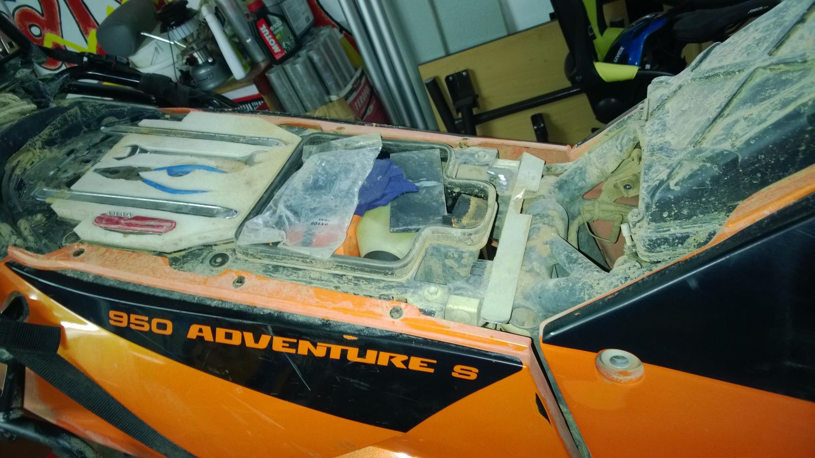 Also bei mir ist unter der Bank sehr viel Drecksuppe, bei sinnvoller Haltung der KTM. Im Foto gut ersichtlich.