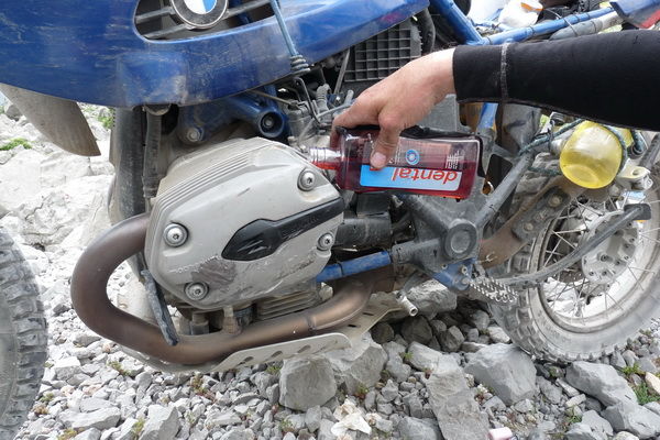 Die braucht kein Superhyperöl, stinknormales reicht auch . Den Behälter hatte ein Zahnarzt dabei .