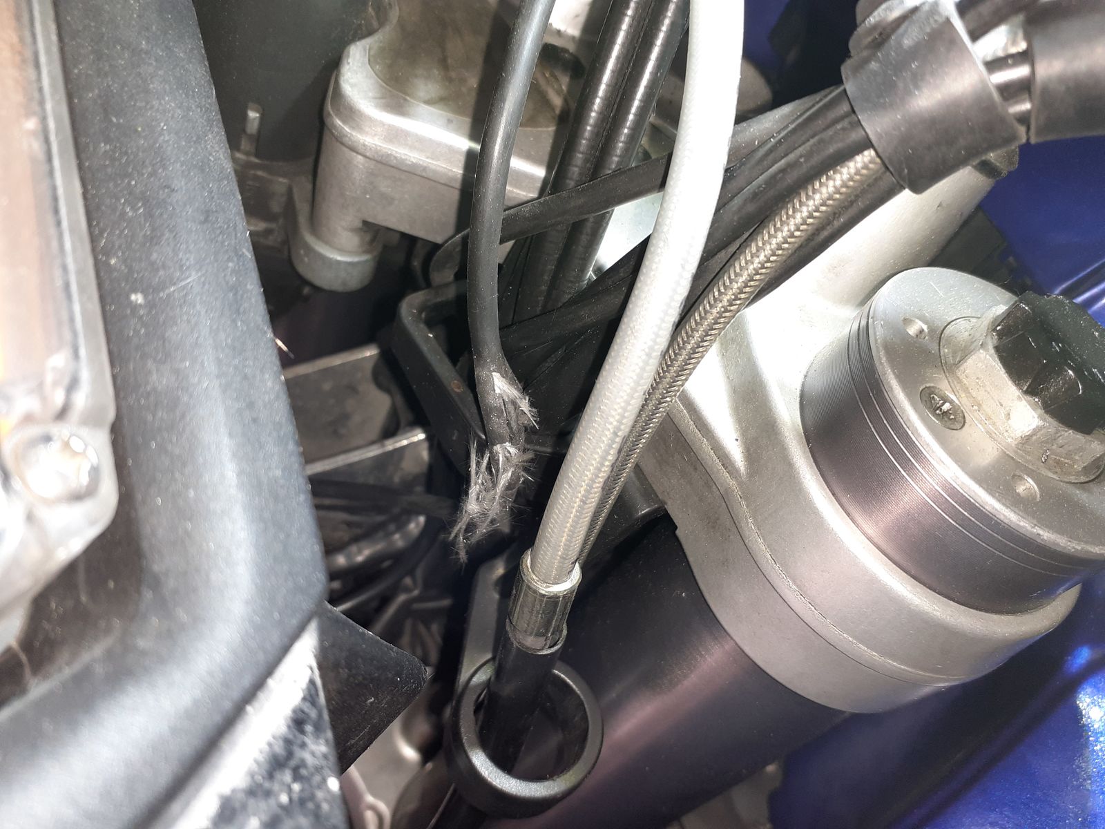 Dafür habe ich dort ein durchgescheuertes Kabel für die Griffheizung gefunden,