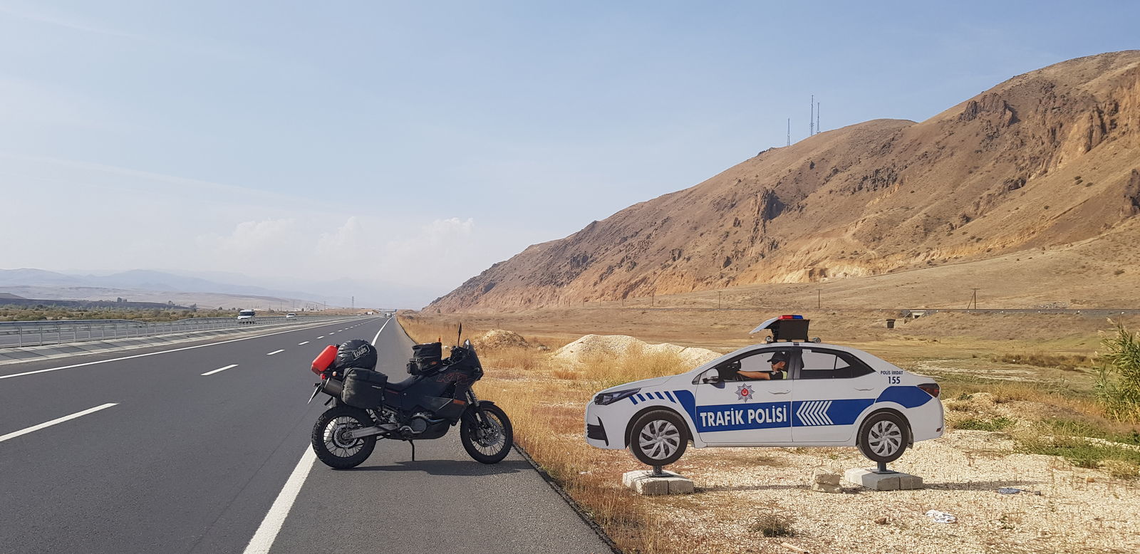 Der türkische Abfertigungsbereich für Fahrzeuge war sehr klein gehalten und auch äußerst spärlich mit Personal besetzt. Ein gelangweilter Beamter kontrollierte meine Fahrzeugpapiere und fragte mich dann nach einer gültigen Versicherung für die Kati. Premiere auf diesem Trip! Hier gab es dann ein Problem, da meine Versicherung nur den europäischen und nicht den asiatischen Teil der Türkei umfasst. In diesem Wissen verneinte ich die Frage nach der Versicherung vorerst und wurde dann vom Grenzer zu einem Büro geschickt um dort eine Versicherung zu erwerben. Der Typ dort hatte aber leider einen Komplettausfall der Internetleitung und konnte deswegen keine Versicherung ausstellen. Da ich wenig Vertrauen in die Zügigkeit türkischer Telekommunikationstechnicker hatte, bin ich dann mit meiner grünen Versicherungskarte zum Grenzbeamten zurück und hab dort auf den Eintrag "Türkei" gezeigt. Stand ja keine Einschränkung dahinter^^ Das hat ihm dann auch zum Glück gereicht und nach einer kurzen Passkontrolle durch zwei Jungs die wohl kaum älter als 20 waren und währenddessen Youtubevideos schauten, ging es für mich in Richtung letztem Wachhäuschen. Da musste dann der obligatorische Laufzettel abgegeben werden, während mir einer der Soldaten freundlich aber bestimmt mit der MP5 vor der Nase herumwedelte und dann war die Grenze für mich auch schon erledigt! Iranische und türkische Grenze hatten insgesamt vielleicht eine Stunde gedauert. So wünscht man sich das!