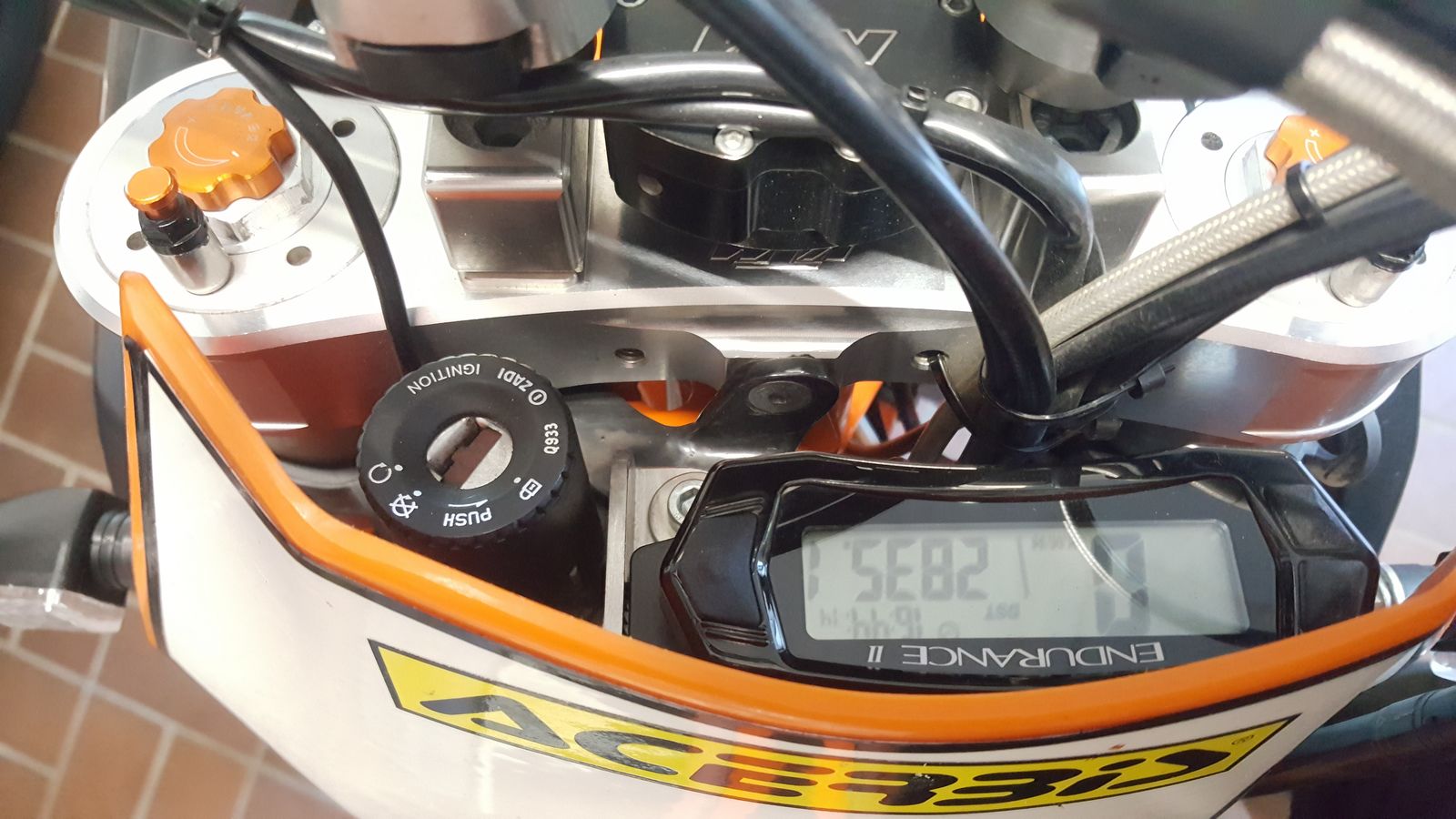 Gabel ist von einer EXC mit passenden Federn für die SE.Für das Zündschloss hab ich mir eine Halterung gebaut so das das Zündschloss an der gleichen Stelle wie original sitzt damit ich sie auch abschliessen kann.