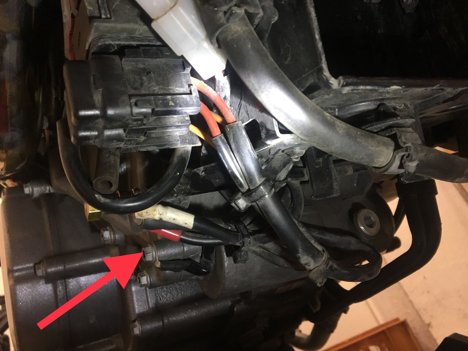 weiss jemand, wohin das schwarze Massekabel führt, das links neben dem Startrelais mit einer 8-ter Schraube über einen Kabelschuh an das Motorgehäuse angeschraubt ist?