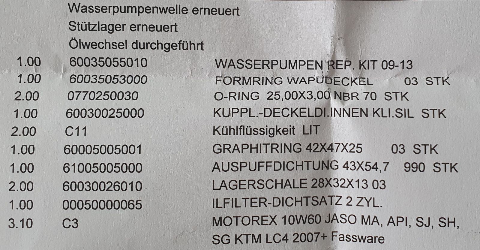 Drauf achten, es gibt 2 Reparaturkits von KTM für die WAPU.