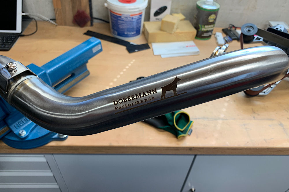 Meine Frage war, ob es möglich ist, den vorderen Krümmer ohne das Logo zu bekommen oder ob man das Logo rausschleifen kann.