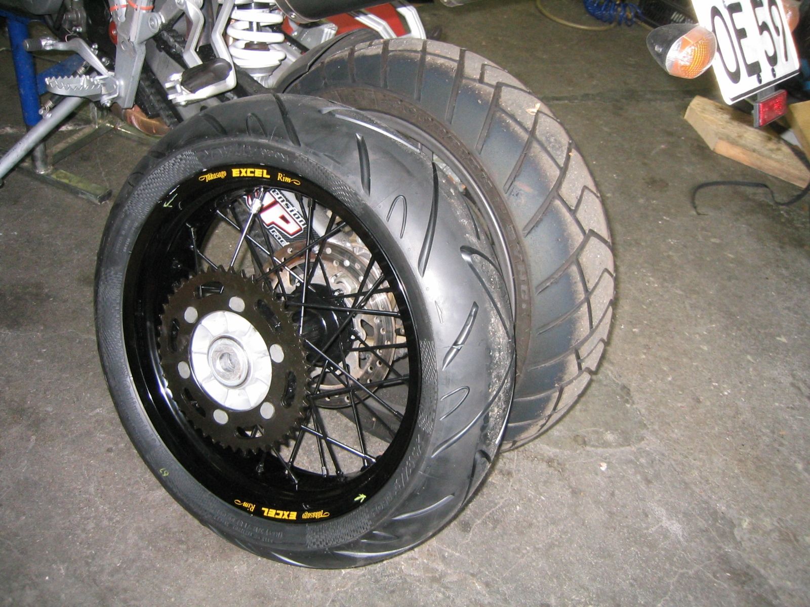... so habe nun mit der firma menze in Hagen gesprochen und wenn ich ende August die Naben zusende dann backen die mir einen Satz 19*2,5 aus einem Crosserhinterrad und 17*4,25 für Hinten .Gleich mit Schwarzen Naben und Speichen mitte september wird dann gebastelt bei motobau das die in die längeren Achsen der Sumo Passen mit den entsprechenden Scheiben und zum Oktober sind´s dann fertig (träum) kosten - bis jetzt noch nicht kalkulierbar