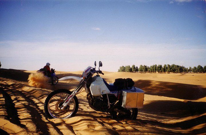 Artgerechte Haltung der Tenere und meiner ersten Enduro eine XT600 in libyschen Sahara.
