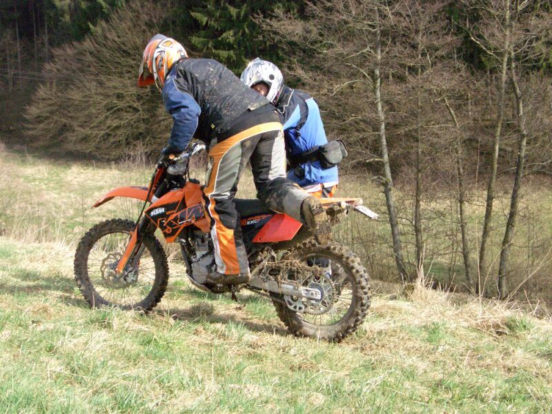 Da komme ich auf den Hof vom lieben Norbert Graß in Ascheid und er meint ich könne auch gerne mit seiner 250 EXC f fahren und dann kann mein Mann auch mit fahren.