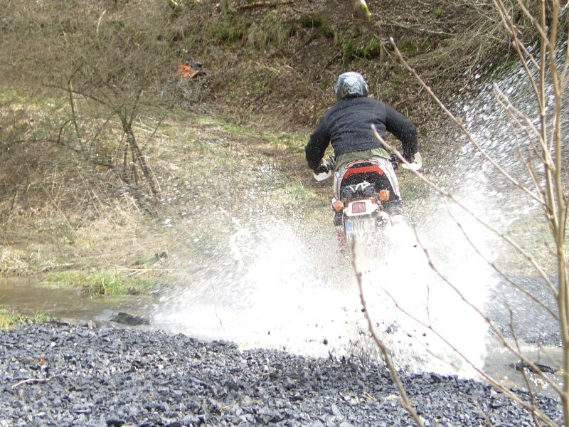 Nunja es ging direkt ab auf nasse Wiesen, matschige Waldwege, durch den Bach hindurch, über Äste weg und bergauf im Matsch und dann wieder runter, alle nochmal , jetzt bitte im Stehen, bitte soviel wie möglich im Stehen usw usw...