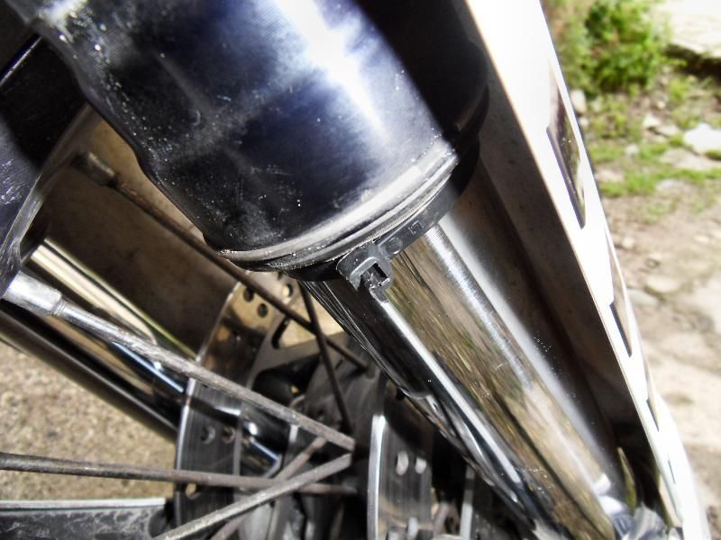 Keine auffälligen Geräusche mehr beim Bremsen. Der Kabelbinder hat auch noch mindestens 3mm Platz, an der Steckstelle.....ALSO:::::::: die Gabel geht NICHT auf Anschlag!!!!!! Auch passen die von KTM angedrohten 21cm Federweg ganz genau!