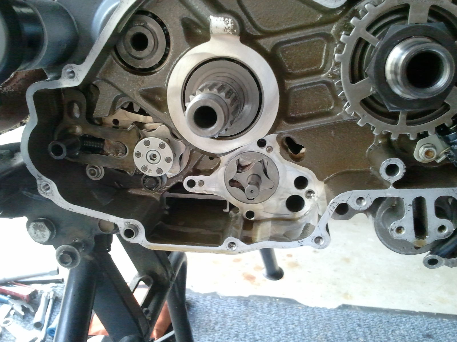 wenn man den Kupplungskorb ohne lösen der Geberkranz-Mutter ausbauen möchte, muss man den Motor ja nach dem lösen der Kupplungskorbmutter noch mal drehen. Dann den Kupplungskorb abnehmen, Bypassventil tauschen (Loctite), Kupplungskorb wieder montieren und danach noch mal den OT einstellen und blockiern zum Einbau (130NM + Loctite) der Kupplungskorbmutter.