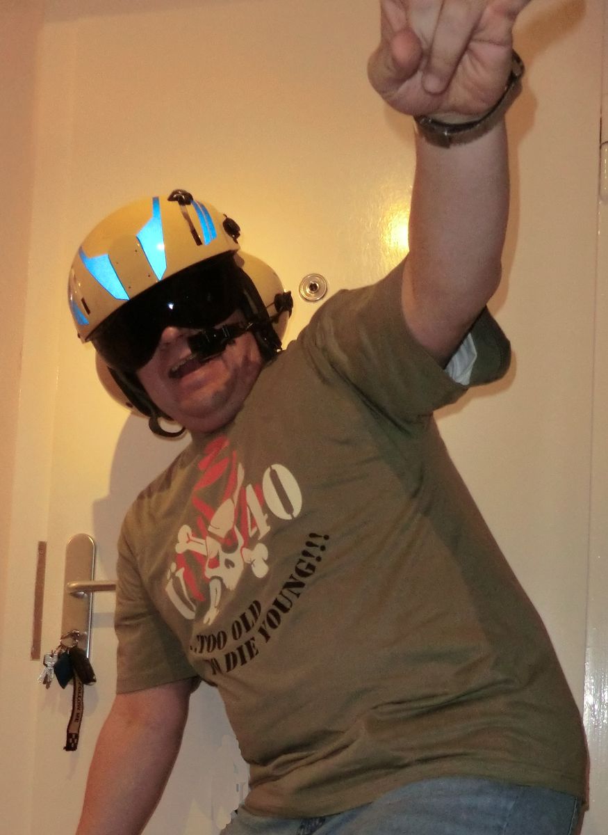 tut mir leid, aber mit dem Pilotenhelm siehtst Du original aus wie Elton! Laughing