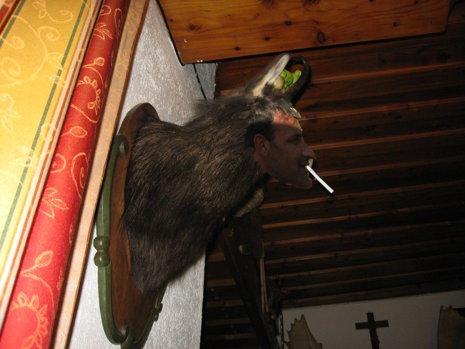 Un noch oana: Warum sitzt der glatzköpfige Milan mit offenem Hosenladen beim Saufen? Damit er sich wenn der Schnaps all ist die Haare raufen koan. Priies!