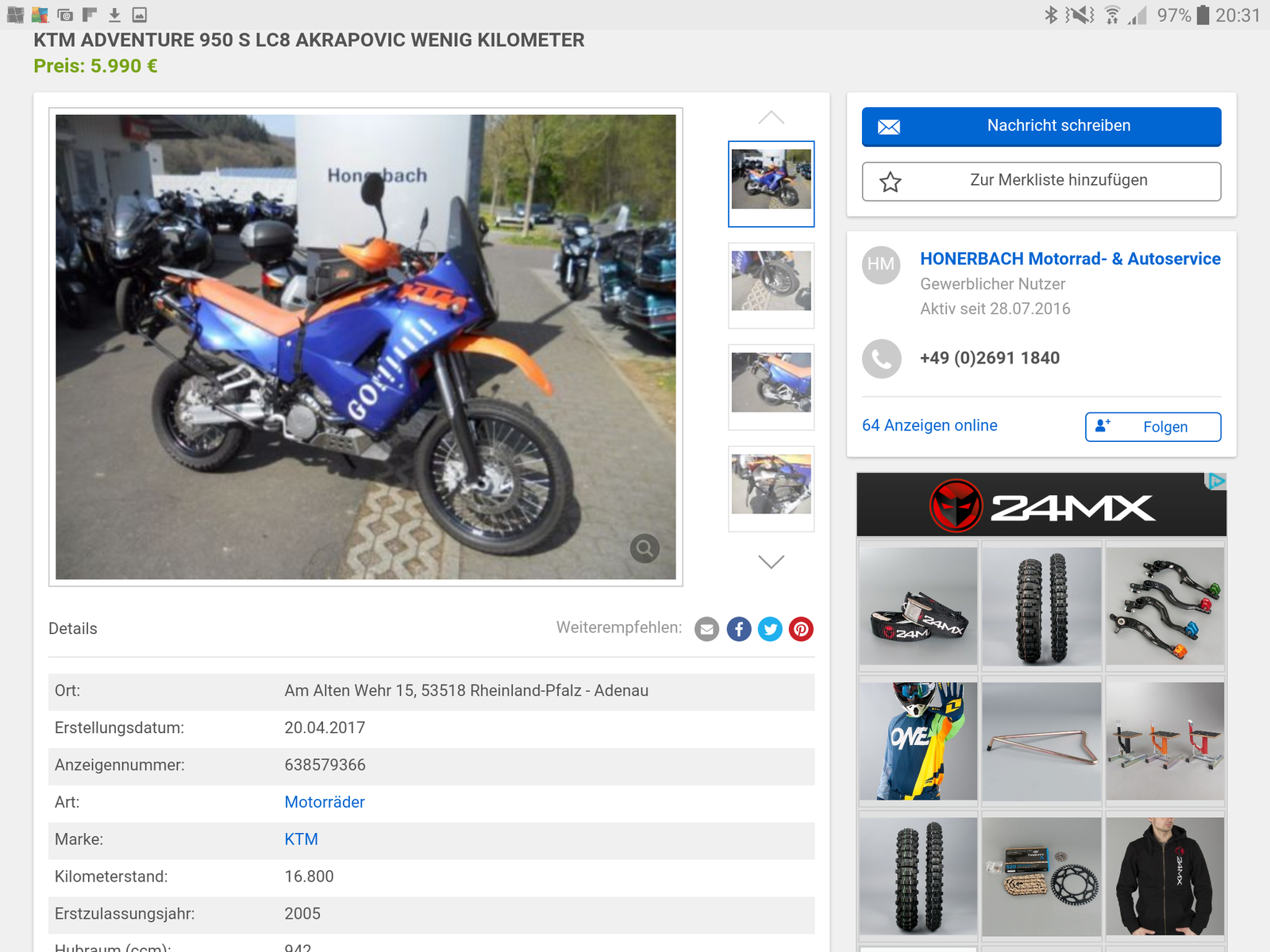 Anmeldungsdatum: 17.04.2003 Beiträge insgesamt: 2263 KTM LC8 Adv 950 S, 2003 Yamaha XT 500, 1981 Husqvarna FE 501, 2021, Harley