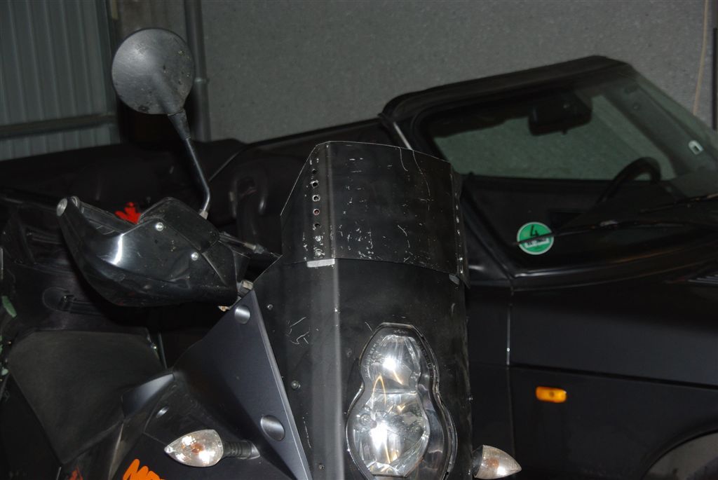Bin 193m, fahre ebenso mit Crosshelm und Brille und normaler Sitzbank (´03-´04). Scheibe ist um satte 10cm gekürzt ---> !!!