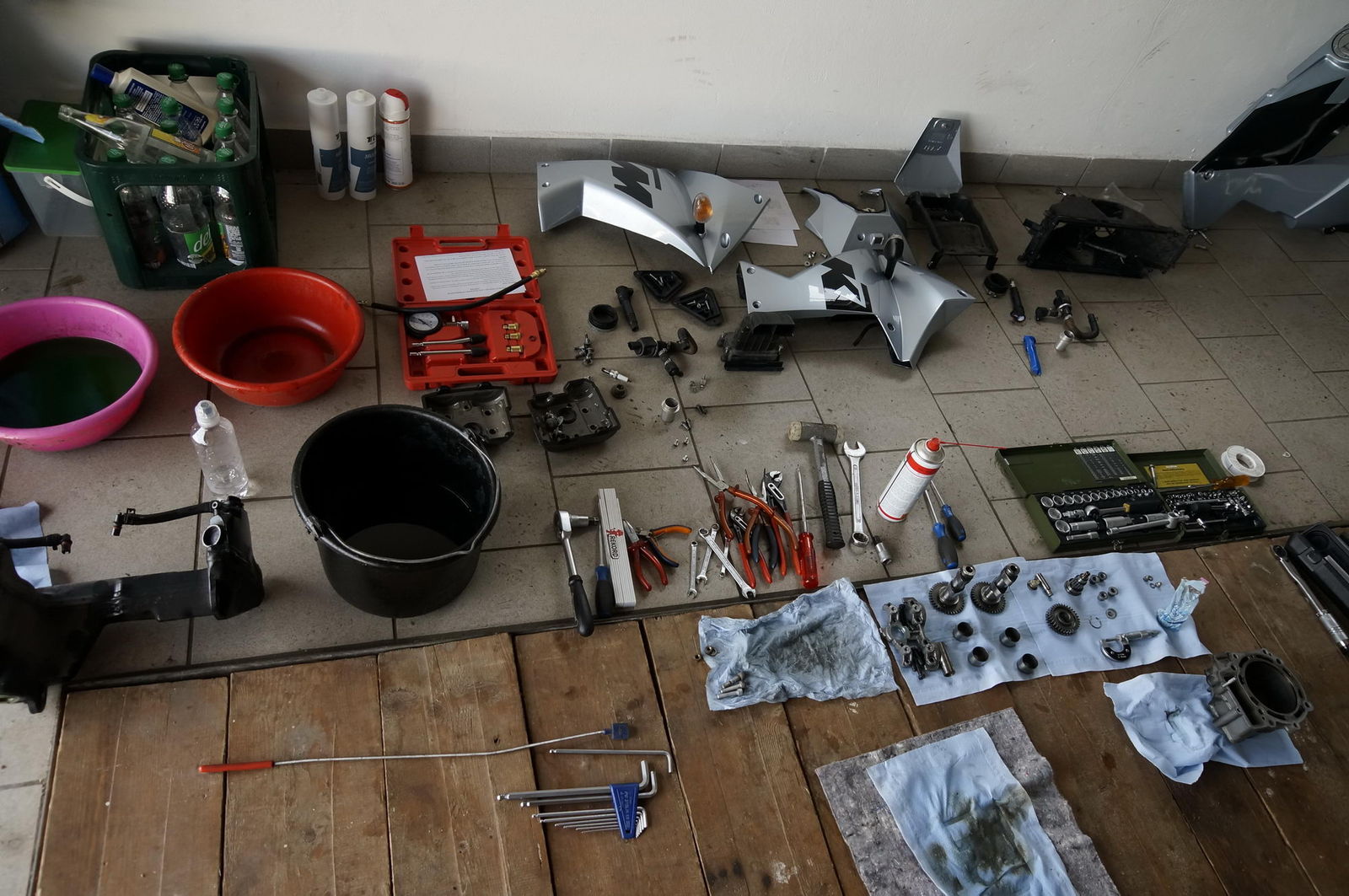 Morgen wird jedenfalls mal der Kopf, Zylinder und Kolben abgenommen um zu sehen was alles defekt ist.