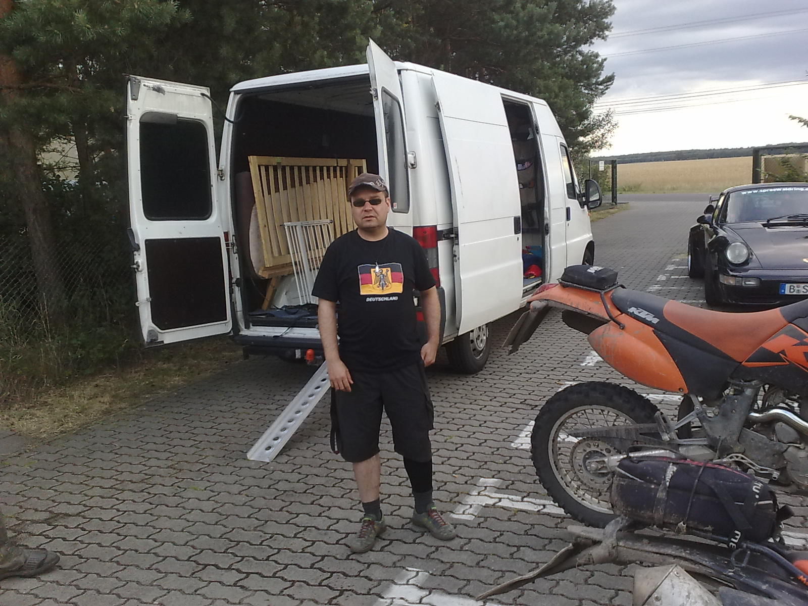 Daheim, daheim... nu sind se endlicher wieder im dicken B! Ich freu mich Auf den letzten 100 Offroadkilometern hatte Matze noch einen Defekt und er musste vom Halben aufgeladen werden...