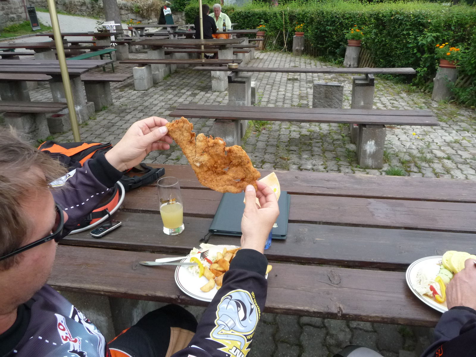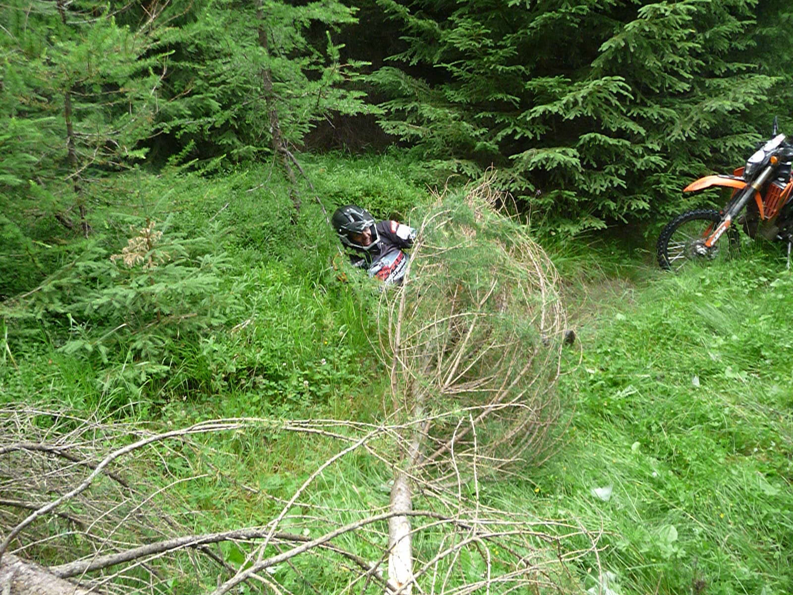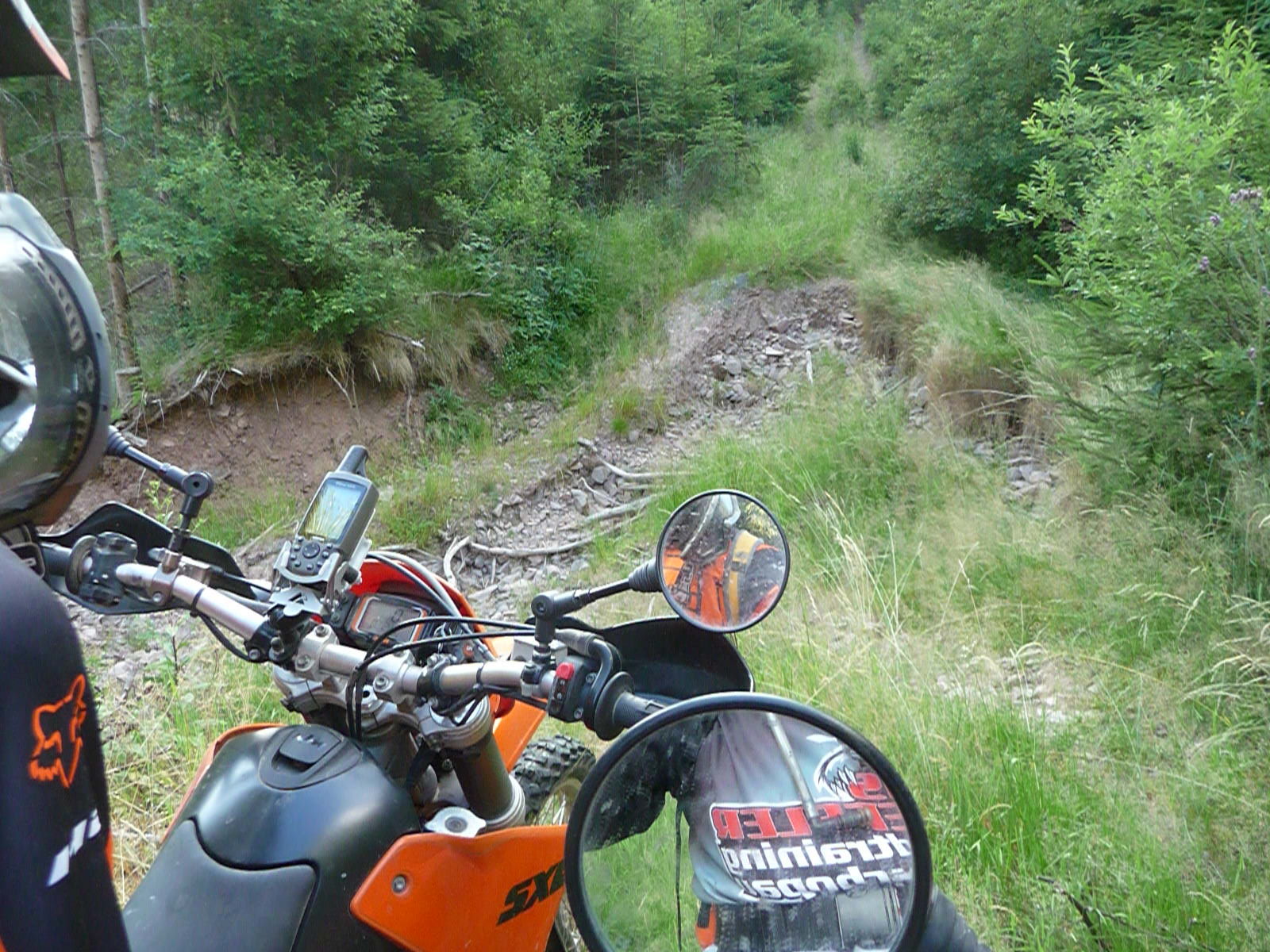 Mittwoch -wir beschließen die gestrige ausgelassene Tour stücke rückwärts zu fahren und nehmen noch bei Probstzella einiges Steilauffahrten - Mittag bei 34 Grad- der Erste Forstarbeiter der uns seines Waldes verweißt und über Land ohne Lotze zu treffen nach Middle East .Schöne neue anfahrt zur Waldschänke .