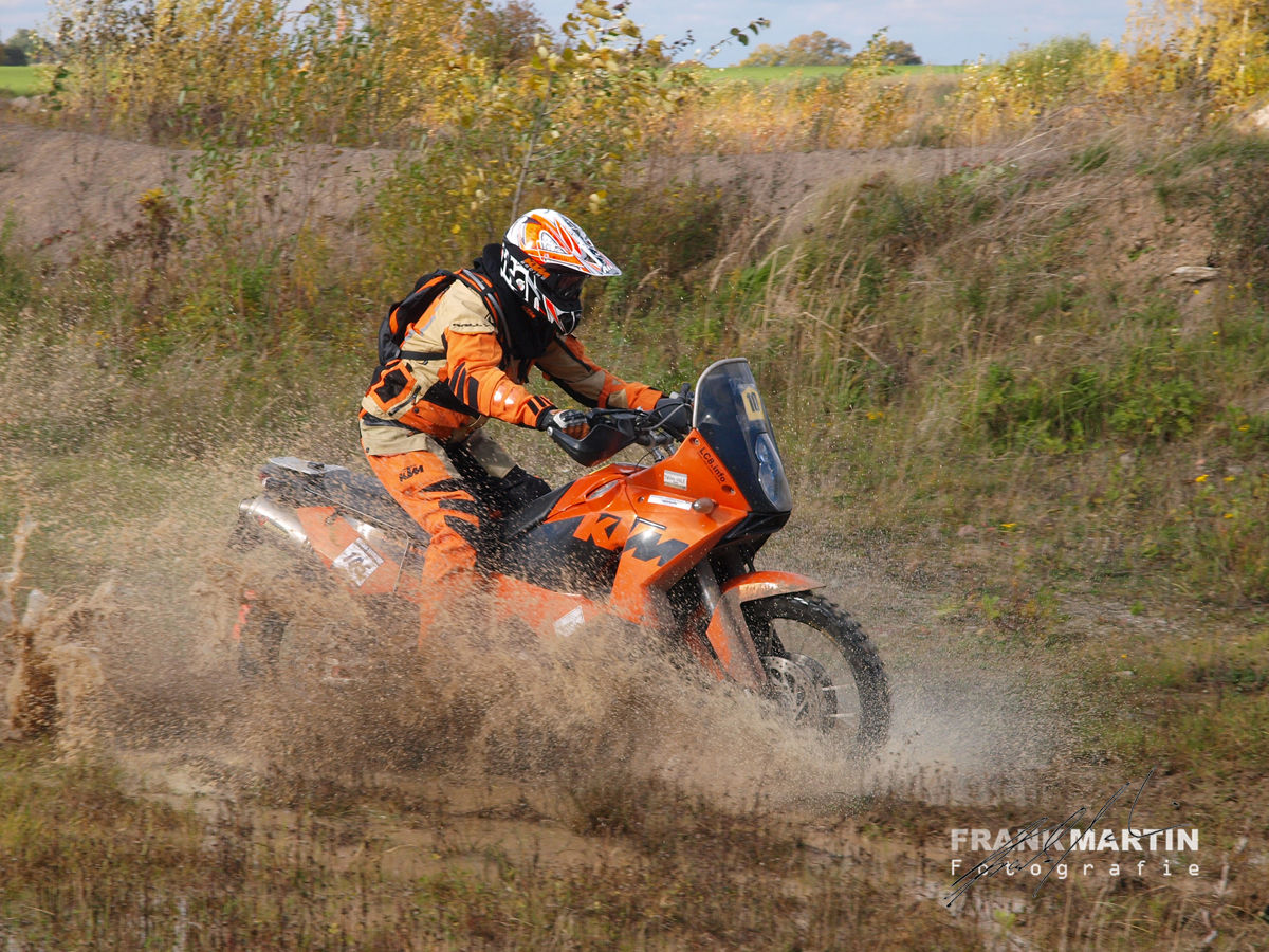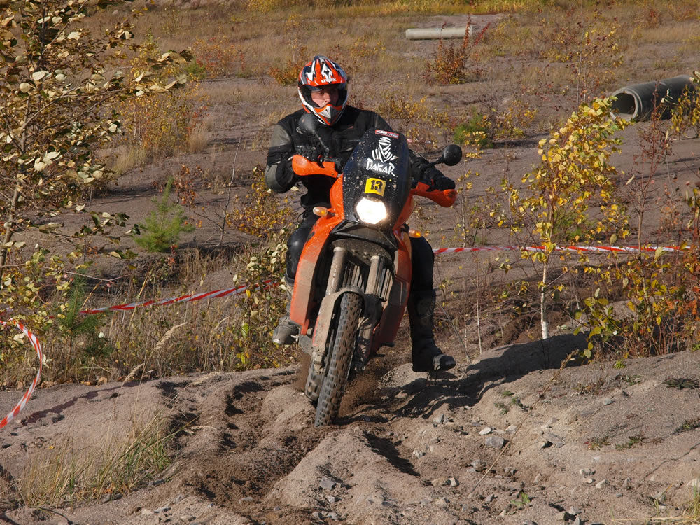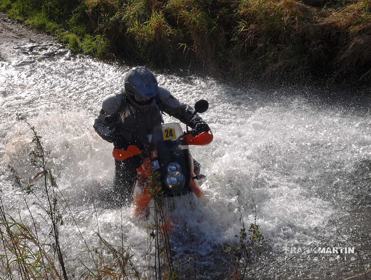 Mit der Nadel brachten wir sie zum Laufen, sprang aber schlecht an und fuhr max. als Heimbringer. Am So. brachte mir der Torsten eine neue Originalnadel mit und ermöglichte dadurch meinen Start in letzter Minute, besten Dank nochmal !!! Als erstes gleich SP mit Wippe und mittels Rampen über eine LKW-Ladefläche. Später gabs dann noch die obligatorische Wasserdurchfahrt und WP in der Melzer Grube. Ohne Erwartungshaltung recht gut gemeistert fuhr ich die Rallye bis zum Schluss durch mit dem gleichen Ergebnis wie die letzten zwei Jahre. Zusammen mit dem Thomas mit seiner neuen und eingeweihten 690 R gings zügig zurück.