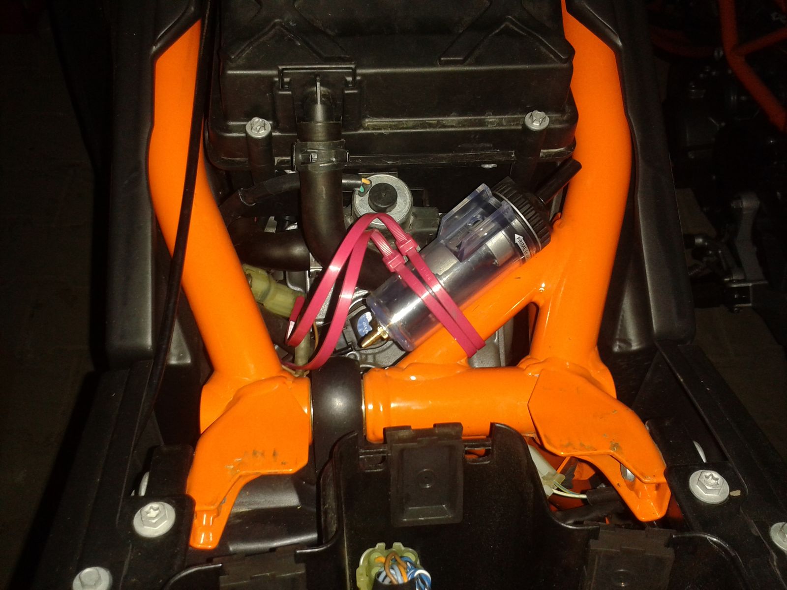 ......da wäre der kleine Tank bei mir innerhalb eines Monats so zugesaut, dass auch ein Ultraschall-Bad nix mehr ausrichten würde! Meine Meinung: ein gänzlich ungeeigneter Platz! Außerdem wird die "Querschwingung" der Kette dafür sorgen, das Du bald einen besseren Platz für den kleinen Tank suchen wirst (schau sicherheitshalber gleich mal nach, ob Du schon Schleifspuren siehst!), oder gar einen neuen ordern mußt!