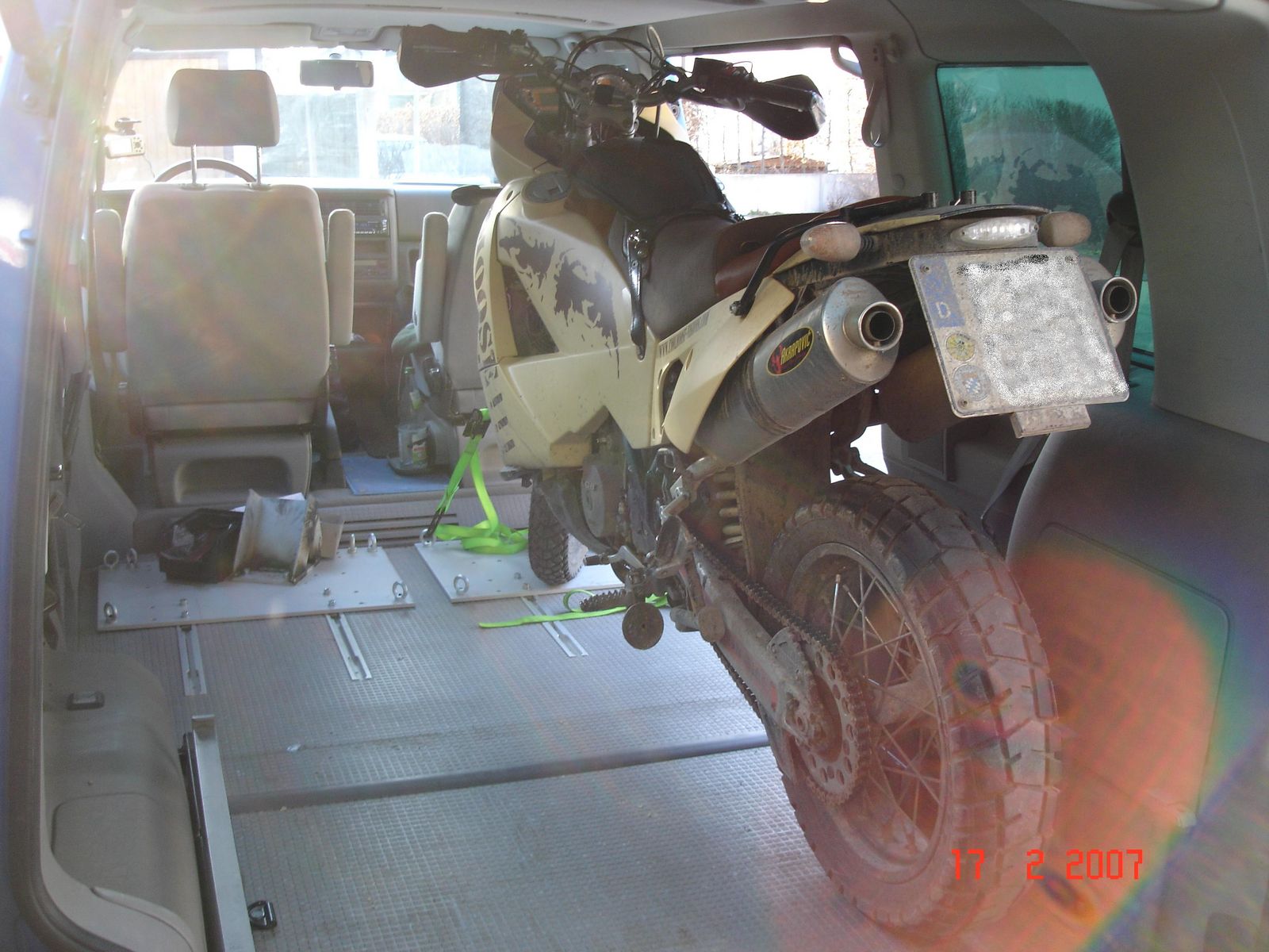 In den T4 Multivan passen 2 950 Adventure ohne Scheibe gut rein.