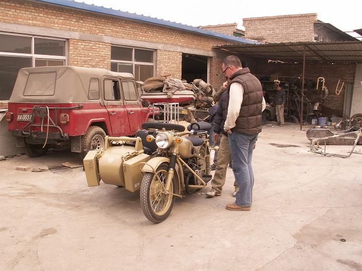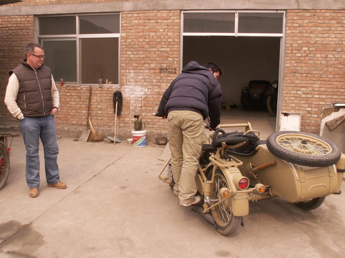 Gersten in Peking beim Dealer ist die Entscheidung gefallen. Ich werde mir ein zweites Motorrad zulegen. Im Winter ist es praktischer auf 3 Rädern. Nach der Probefahrt stand es fest. Es wird eine Chang Jian 750 im WW2 Style in Sahara Beige. Eine identische Maschine stand bereit für eine Probefahrt.