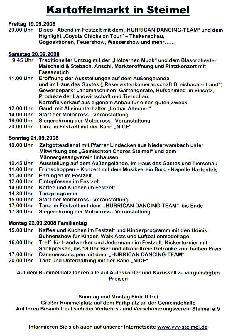 Wenn Ihr Euch ein schönes WE machen wollt (egal ob nur gucken oder auch selber mitfahren), dann kommt vorbei. Am Besten am 20.09. morgens schon oder noch besser am 19.08. Wir bekommen auch bestimmt ein kleines Rahmenprogramm aufgestellt mir ein paar netten Ausfahrten um Steimel und durch den Westerwald drum herum. Anreise am 19.08. (Freitags) ab 12 Uhr sollte auch kein Problem darstellen.