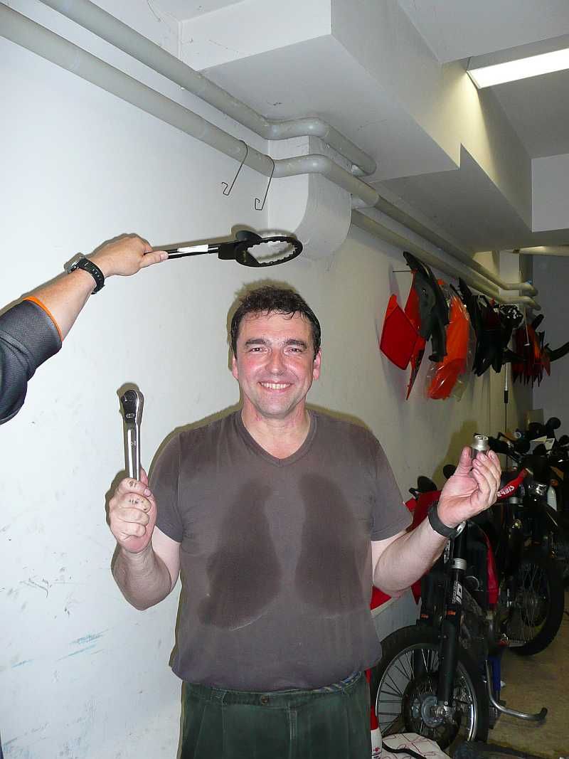 Willkommen in der wunderbaren Welt der Geländerollerfahrer! Dank des fleißigen Rübenbauers ist auch bei Dir endlich Schluß mt dem ewigen Schrankdienst, mein Sohn. Vielleicht werden wir im nächsten Jahr in Grimme noch nicht die Mehrheit stellen, aber wir werden viel entspannter ankommen, als die Fahrer der handgekuppelten Klassik-Enduros.