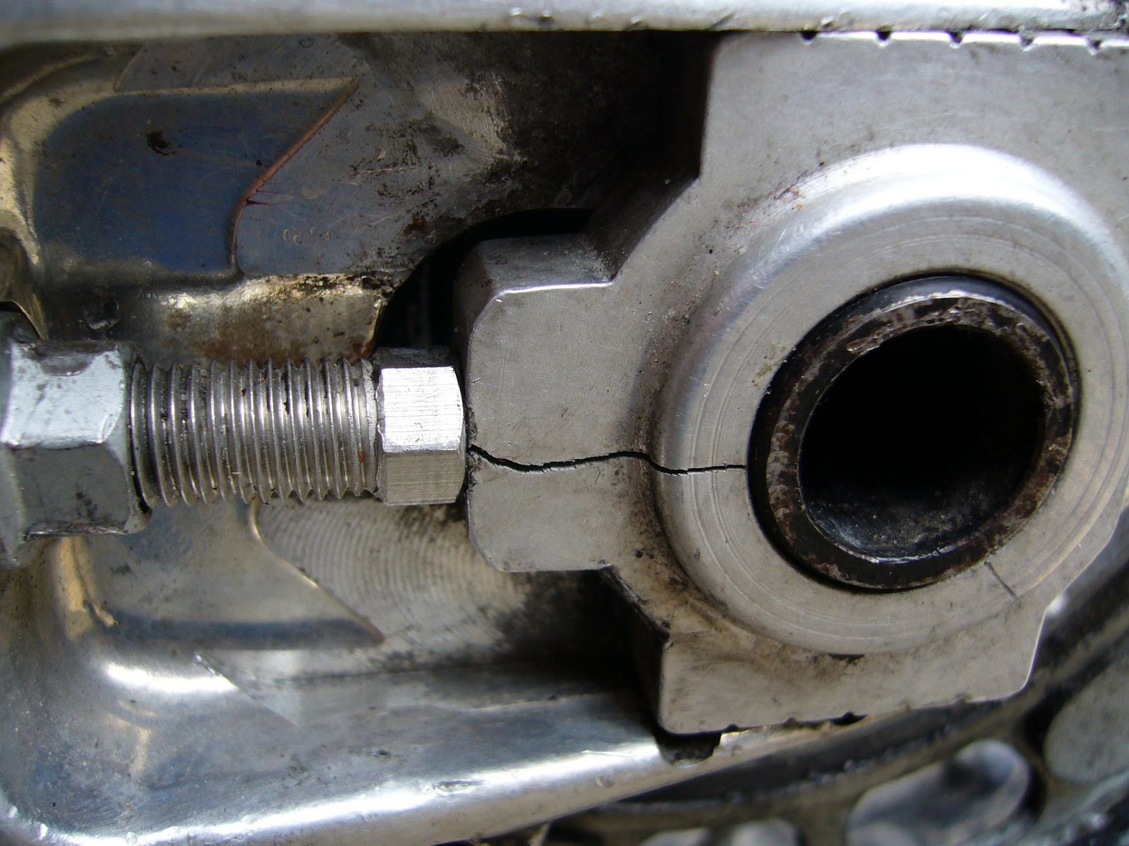 hab heut beim Kette spannen festgestellt das ,daß Aluteil auf das die Einstellschraube zum Kettenspannen drückt gerissen ist !